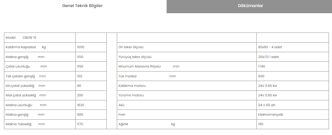 Min. Çatal Yüksekliği : 80 MM